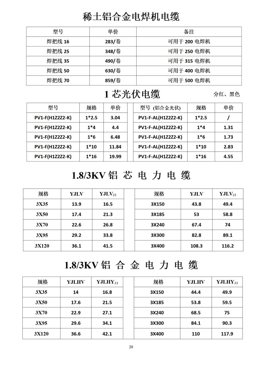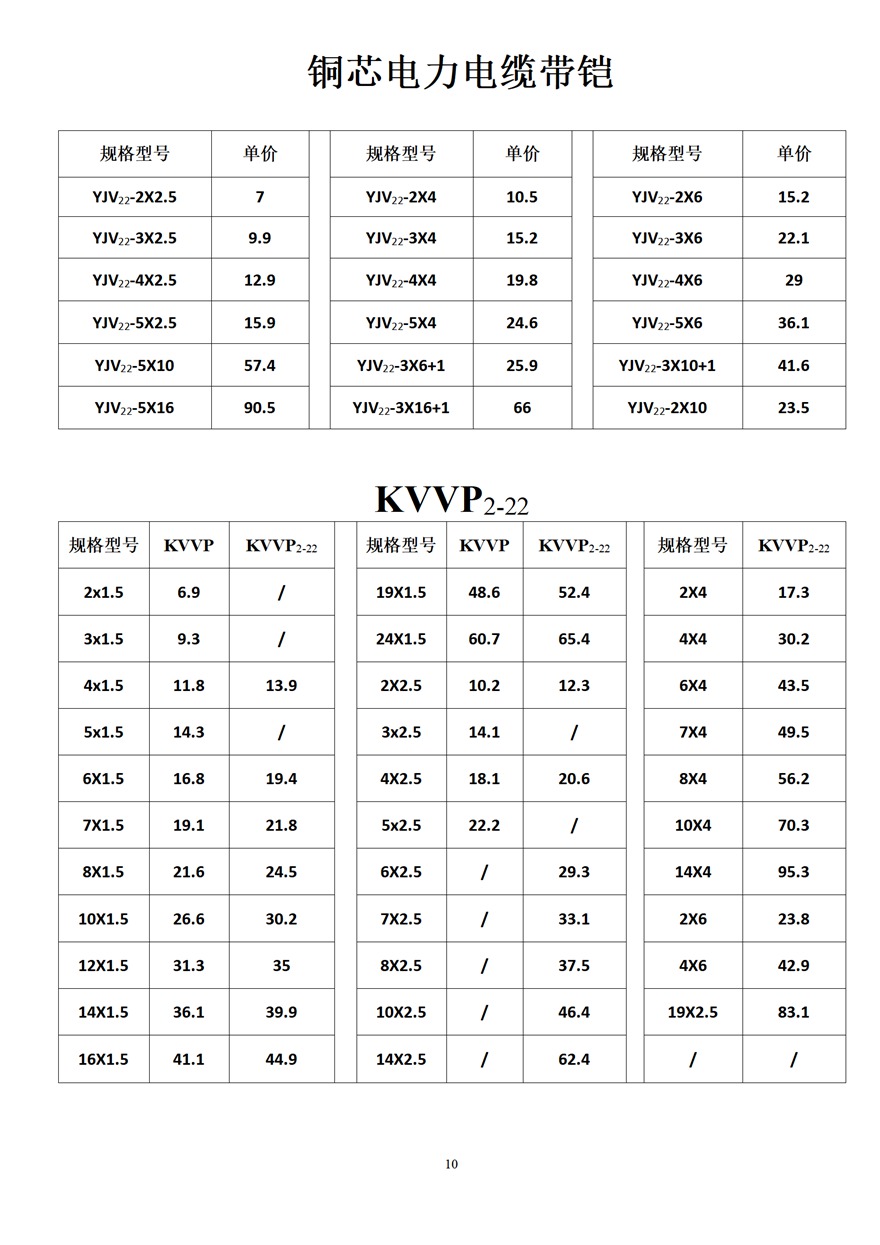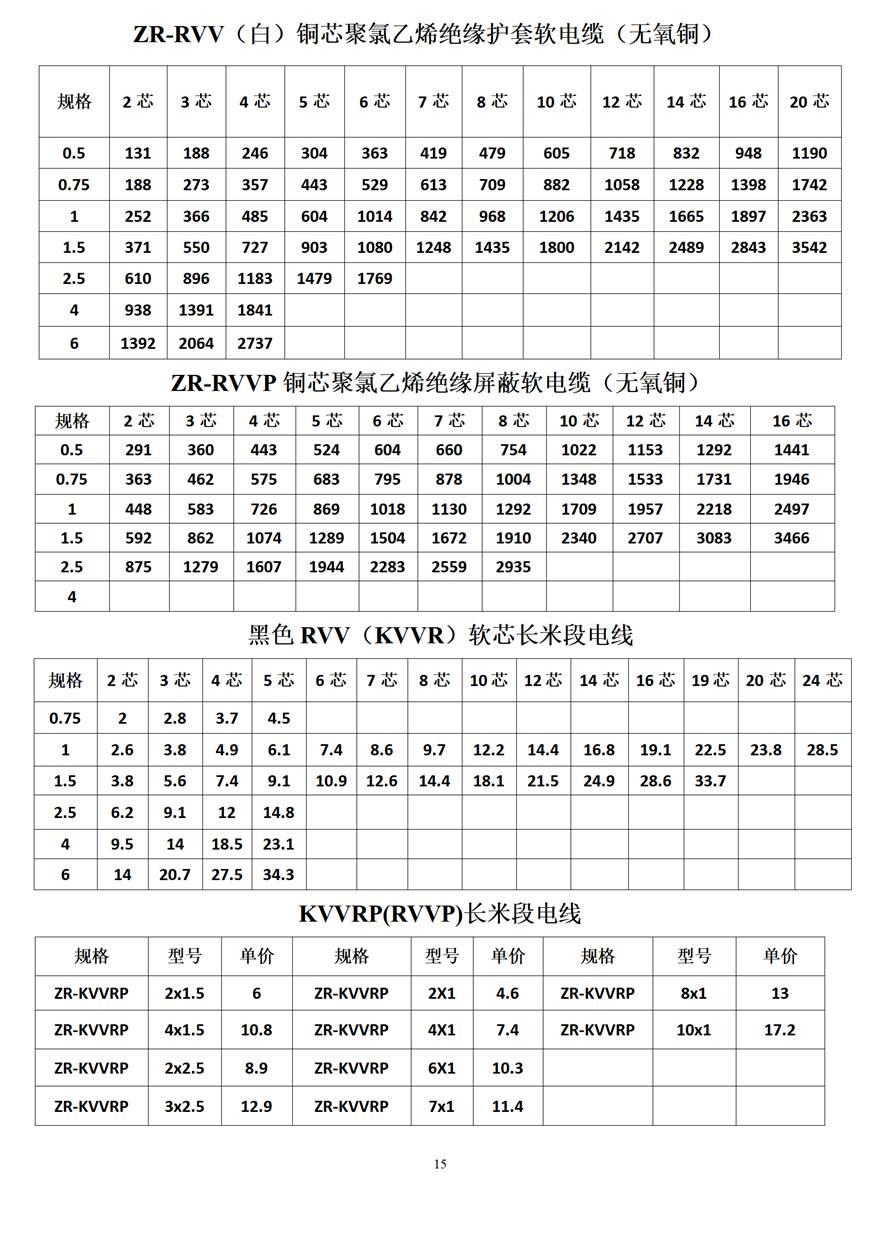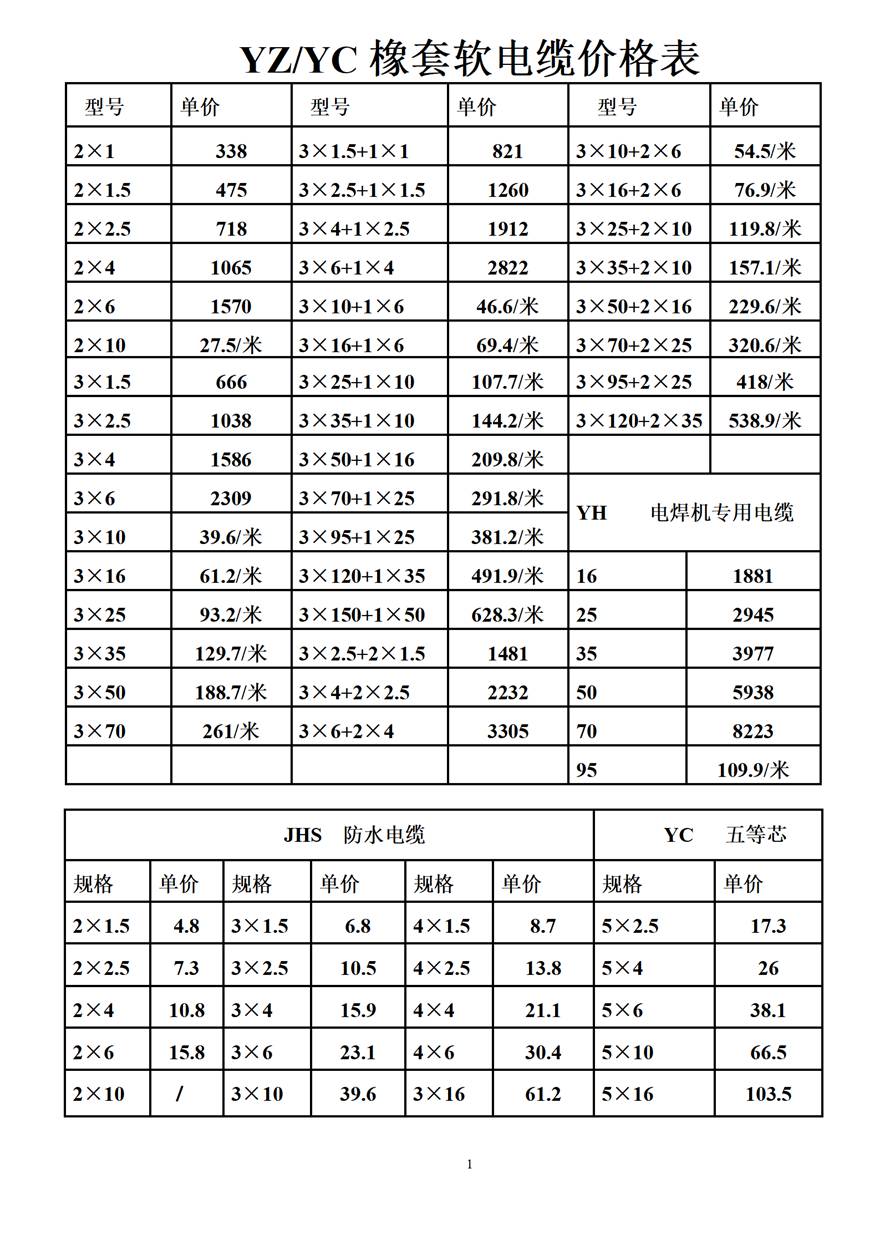 金峰電纜價格表