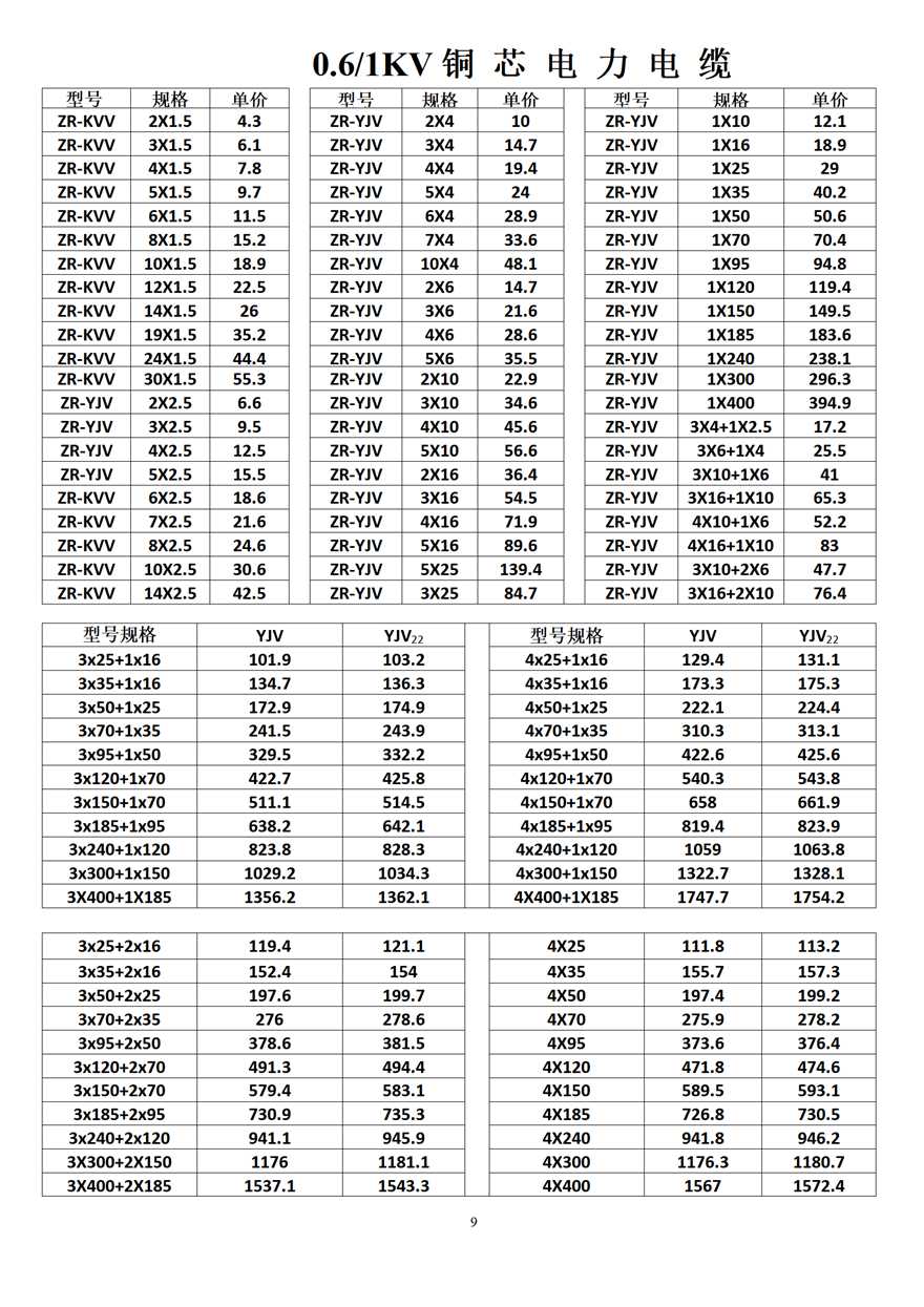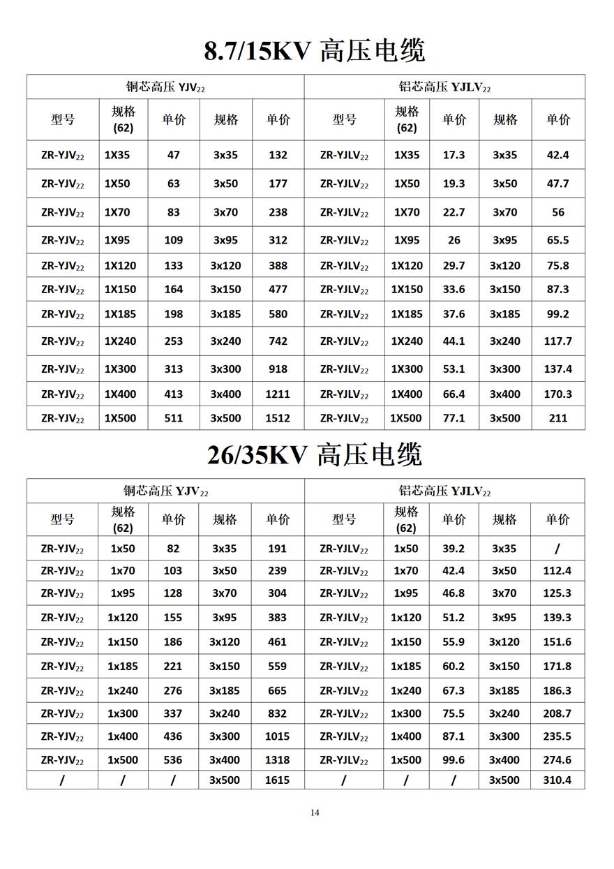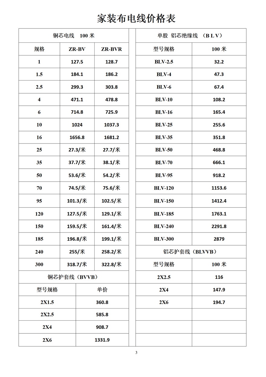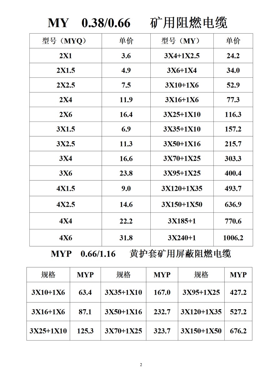 金峰電纜價格表