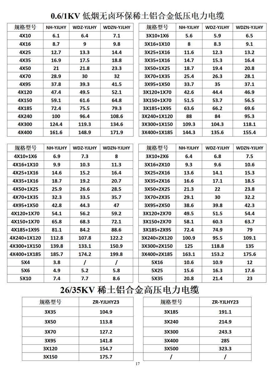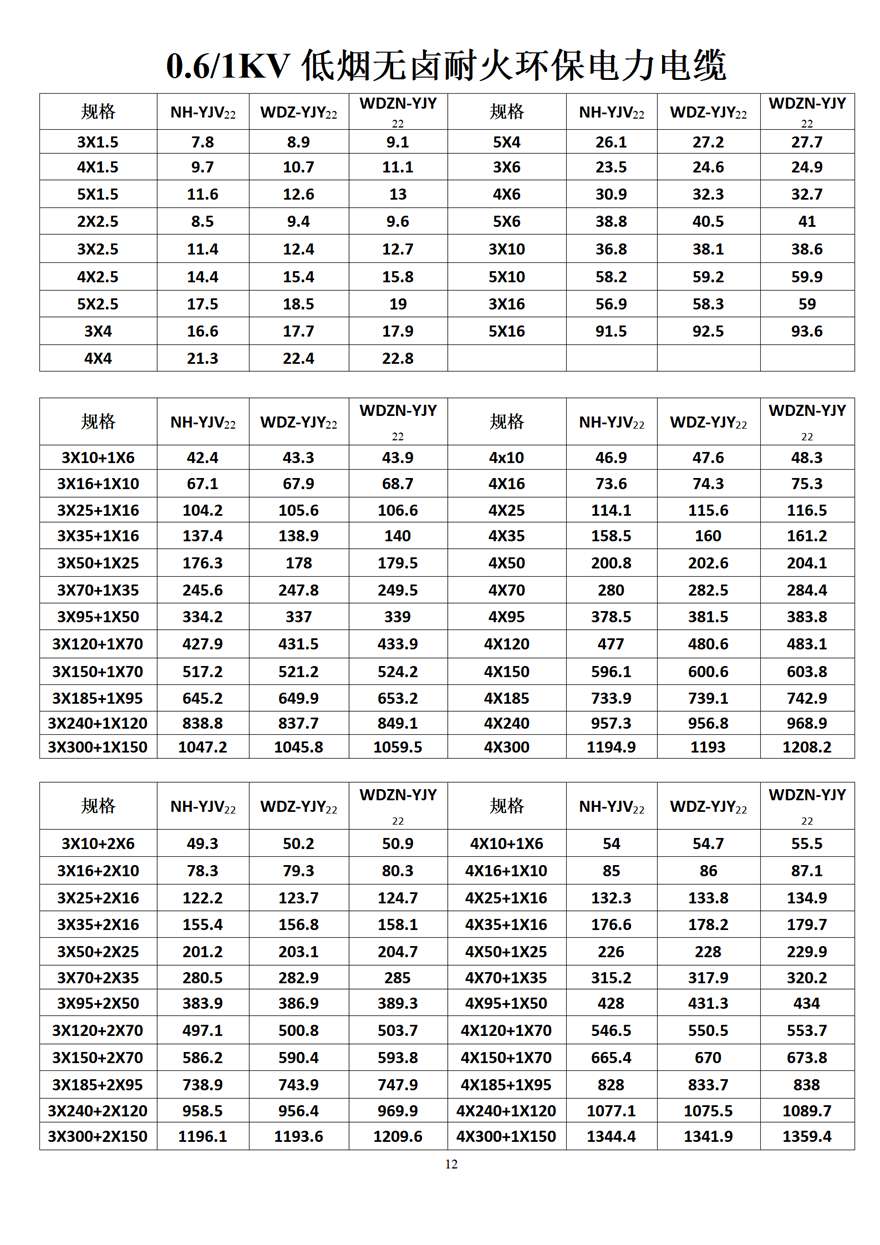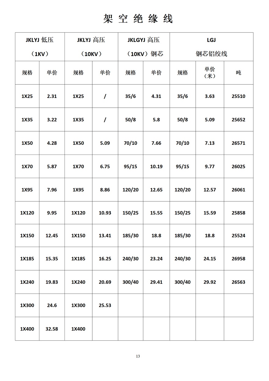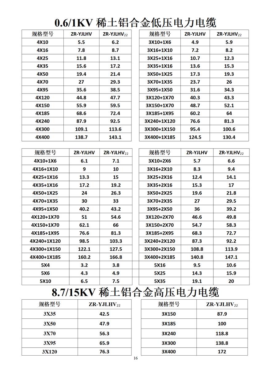 金峰電纜價格表